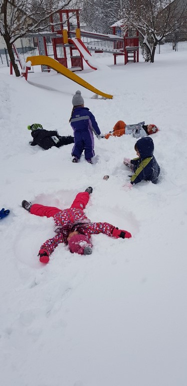 Ove dane u vrtiću koristimo za provođenje najrazličitijih aktivnosti na snijegu i na taj način jačamo organizam, provodimo tjelovježbu, potičemo maštu i kreativnost, razvijamo spretnost, koordinaciju, grubu motoriku, potičemo samostalnost prilikom oblačenja potrebne odjeće (skafandera, šalova, čizama, kapa, rukavica), učimo o zimi, provodimo istraživačko-spoznajne aktivnosti u kojima djeca samostalno dolaze do novih spoznaja i zaključaka i još mnogo toga.