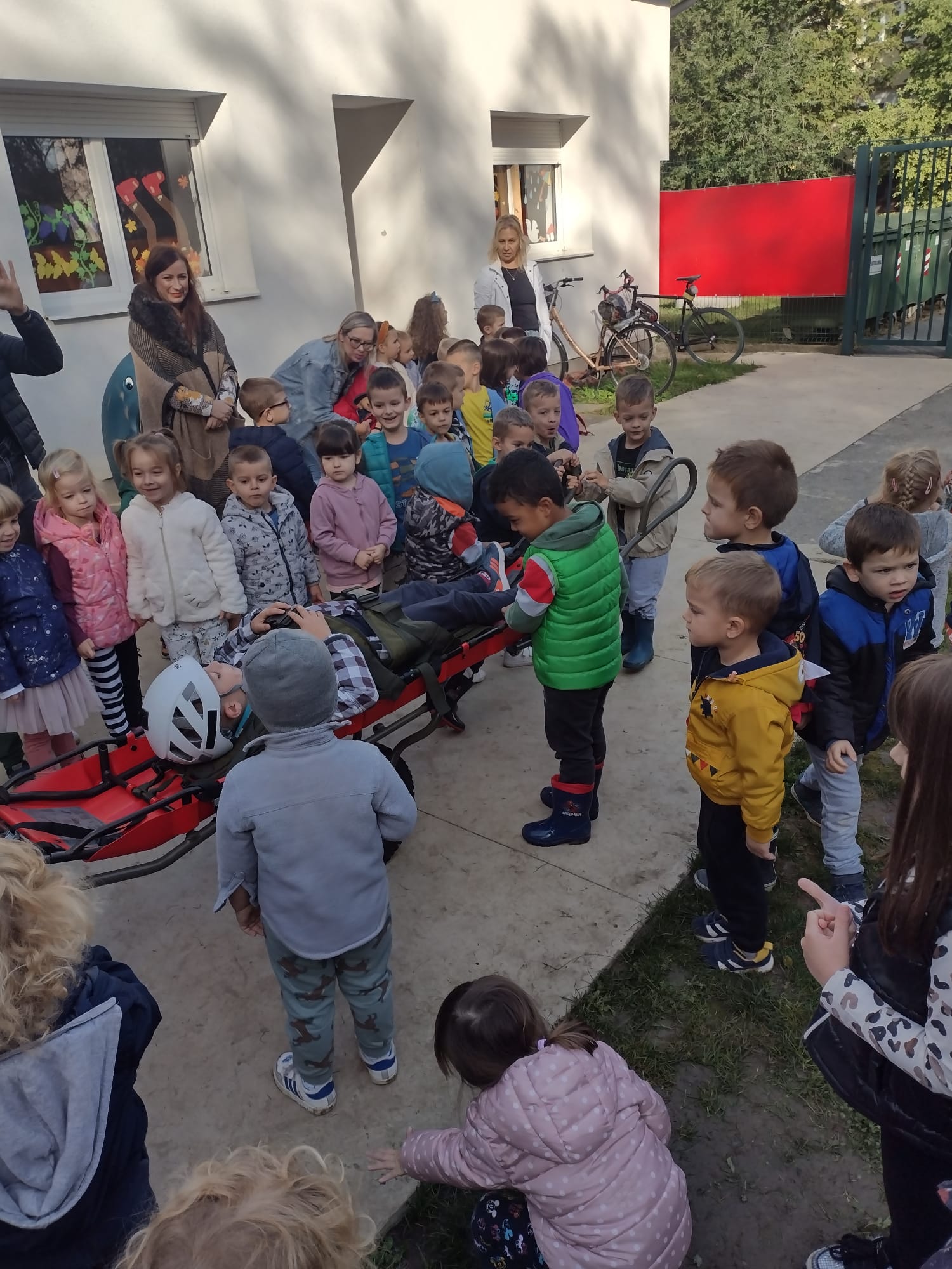 Veliko oduševljenje kod djece su izazvali vatrogasni kamion i puštanje vode iz crijeva, policijski auto, rotirka, odore, zip line, vožnja u kolicima, pas koji pomaže HGSS u spašavanju i još mnogo toga. Pitanja su frcala sa svih strana. Na ovaj način smo našim mališanima približili važnost ovih zanimanja, a tko zna – možda smo i potaknuli nekoga među njima da se za dvadeset godina i sam pronađe u nekom od ovih zanimanja.