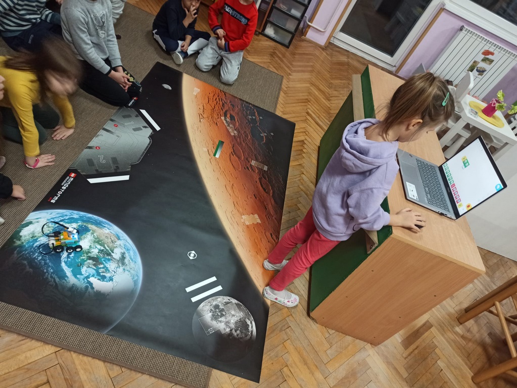 U Kockićima (radionice za djecu visokih intelektualnih potencijala) smo tijekom siječnja usvajali početna znanja na osobnom računalu, uspoređivali smo osobno napredovanje i međusobno si pomagali u logičkim igrama. Kroz nekoliko susreta radili smo u Scratch programu. Kako odrediti likove, smjerove kretanja, pozadine i boje  osnovnom formiranju igrice, pokušavali smo individualno i u paru. Dodavali smo zvukove, fotografije i funkcije (kretanja) u početnoj postavljenoj logici. Otkrivali smo što je iluzija i izradili smo svoju iluziju „Ptica u kavezu“. Na svakom susretu igramo socijalno-društvene igre i tangrame. Brzina razmišljanja i logički sljedovi izmjenjuju se po bojama, a samo suradničkom igrom  i prijedlozima dolazimo do rješenja. Započeli smo s temom Metali, robotika i astronomija. Uočavali smo korelaciju metala, metalnih opruga i materijala koji se koriste za svemirska vozila. Improvizirali smo prostor svemira (Mars, Mjesec i Zemlja) te planirali i rješavali problem međuplanetarnog prijevoza.