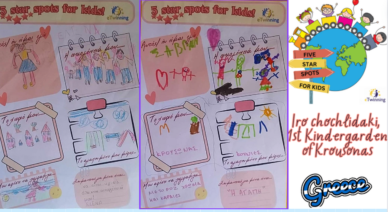 Naš novi Europski projekt kojeg provodimo putem Europske školske i obrazovne platforme “Five stars spots for kids” projekt je u kojem ćemo integrirano i sukonstruktivno uključiti elemente građanskog odgoja u kurikulum vrtića. Misao vodilja u planiranju projekta s djecom bit će pravo djece na sudjelovanje, upoznavanje naših mjesta i zajednice, pozitivan način izražavanja osjećaja, mišljenja i stavova. Djeca će predstaviti lokalna mjesta u kojima vole provoditi vrijeme, igrati se, istraživati, sklapati prijateljstva i jednostavno se osjećati sretnima. Djeca će nas putem verbalnog iskaza, crteža i drugih kreativnih načina upoznati s tim mjestima, a zatim ćemo ta mjesta posjetiti, nacrtati kartu, objekte i krajolik, fotografirati, igrati se i podijeliti to online s ostalom djecom i učiteljima partnerima u projektu. U suradnji s lokalnom turističkom agencijom ponudit ćemo rezultat našeg projekta: radit ćemo zajedno i koristiti ITC alate kako bismo izradili brošuru “Dođi i posjeti moje sretno mjesto” s opisima mjesta koja možete vidjeti i u njima uživati s djecom kada posjetite neki od partnerskih gradova ili sela.