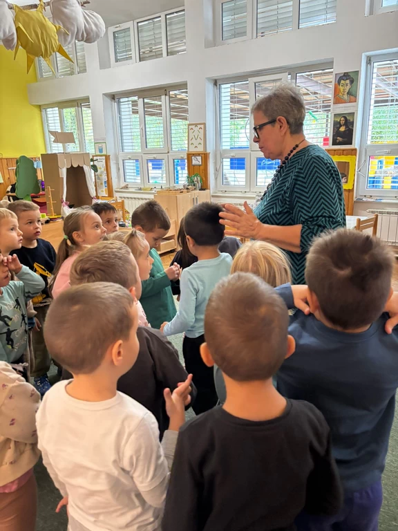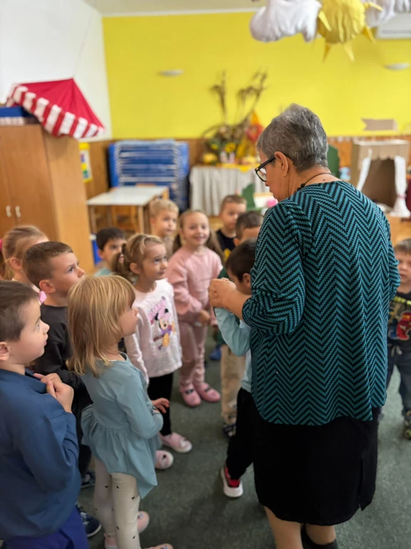 Baka Mirjana nas je uvela u svijet engleskog jezika na djeci blizak i zanimljiv način – kroz vesele pjesmice i pokretne igre. Djeca su aktivno sudjelovala, učila nove riječi i pokrete, a posebno ih je privukla toplina i strpljenje s kojima je baka pristupila svakoj igri.