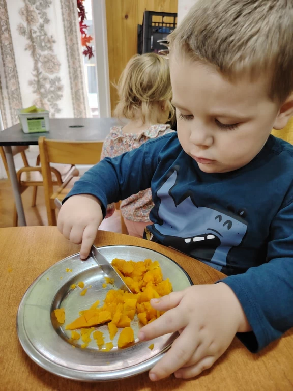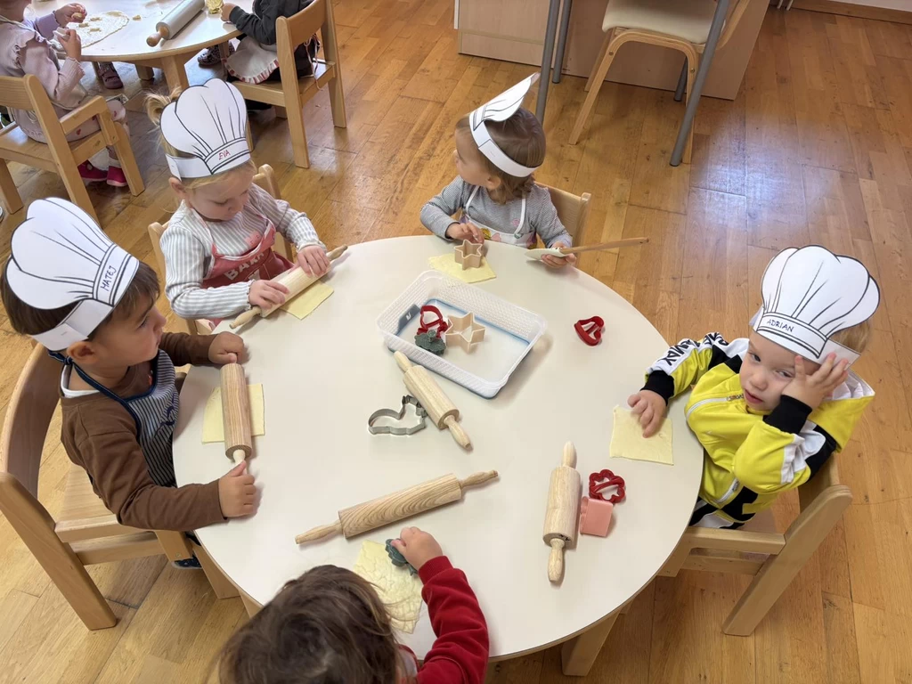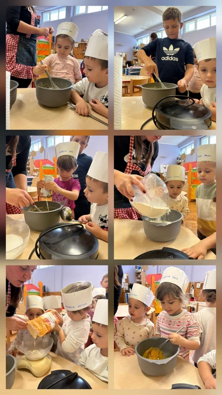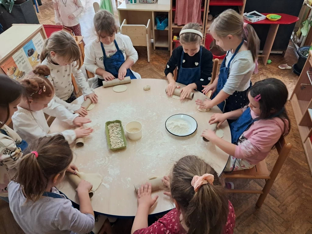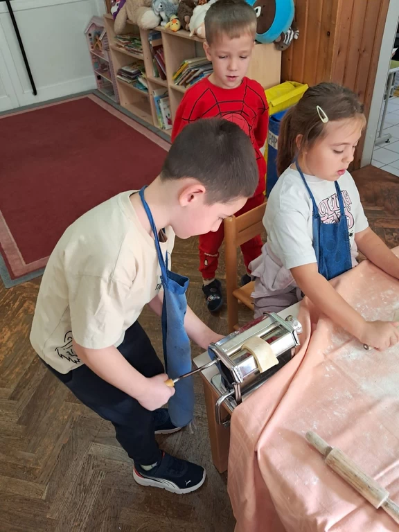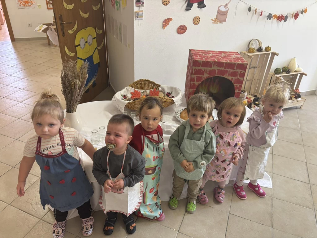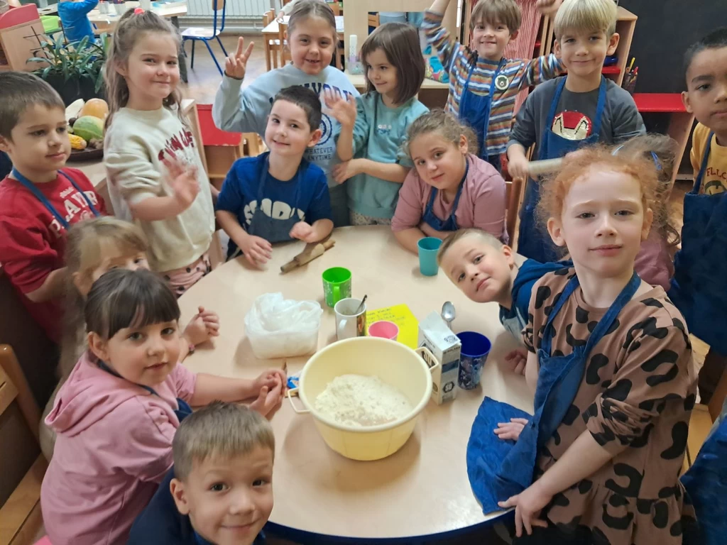 Tijekom tjedna djeca su, kroz igru i istraživanje, učila o putu kruha – od zlatnog klasa do mirisnog peciva na stolu. Posjet pekari, izrada vlastitih kruščića, kolačića, tjestenine te razgovori o vrijednosti rada i prirode ispunili su naše dane toplinom i zajedništvom.