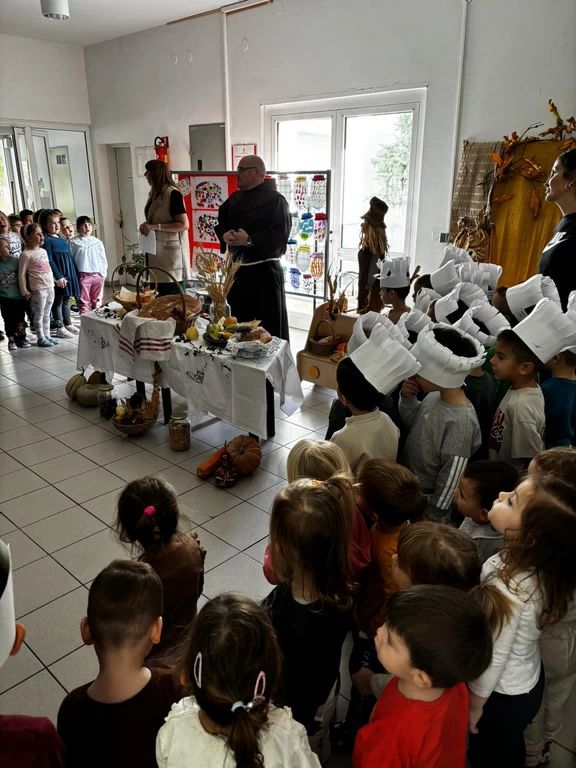 Na kraju tjedna, u posjet nam je došao fra Vjeran Lazić iz župe sv. Josipa Radnika te blagoslovio kruh i podsjetio djecu koliko je važno zahvaljivati za sve što imamo. Fra Vjeranu i njegovom primjerenom pristupu našim najmlađima zahvalili smo pjesmom, recitacijom i osmijesima koji su govorili više od riječi. Na rastanku je fra Vjeran djeci dao i simboličan zadatak – tijekom dana zahvaliti svima koji ih prate i vole: svojim odgojiteljicama, prijateljima i roditeljima.