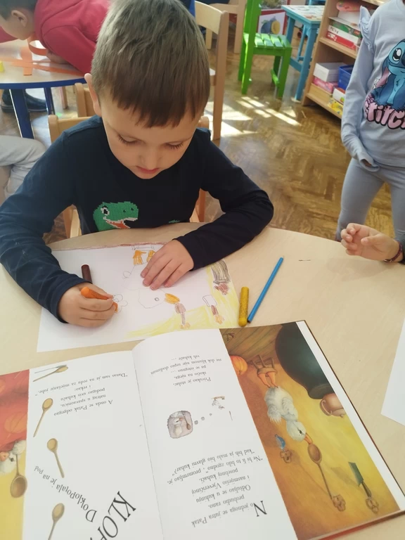 Čitali smo priču “Juha od bundeve” te time poticali razumijevanje teksta, izražavanje doživljaja te razvijali sposobnost slušanja i verbalnog izražavanja.