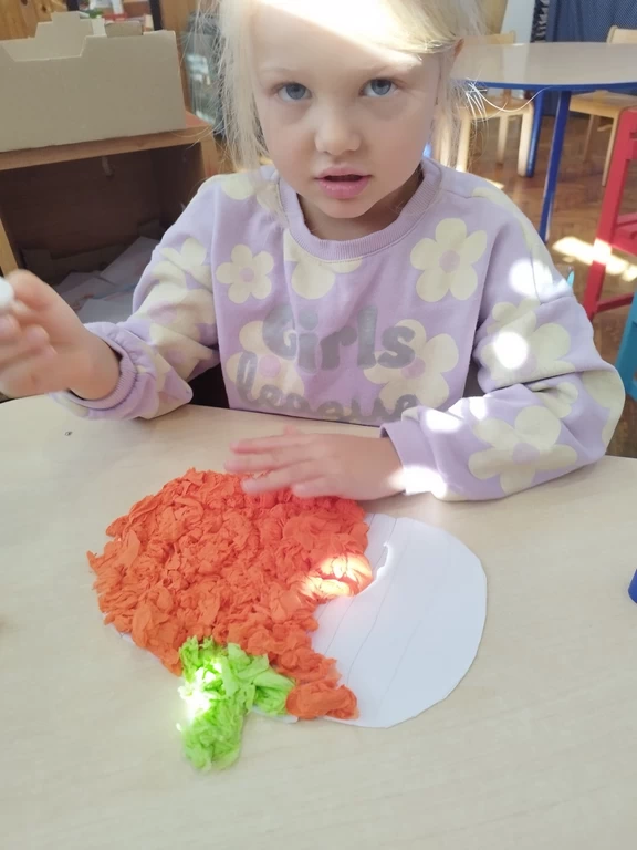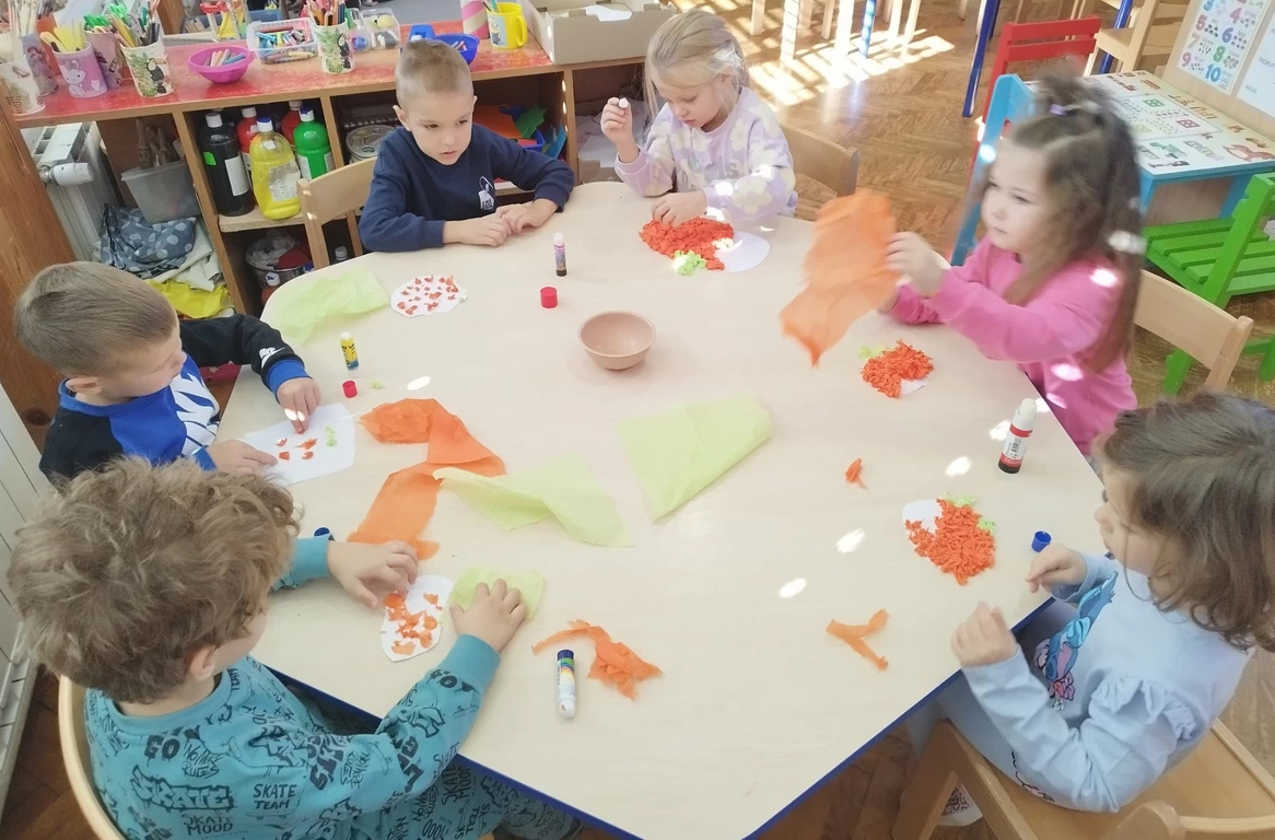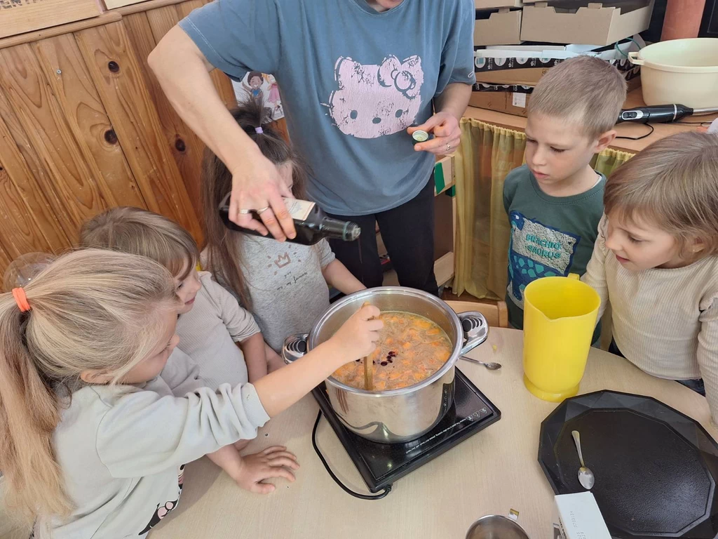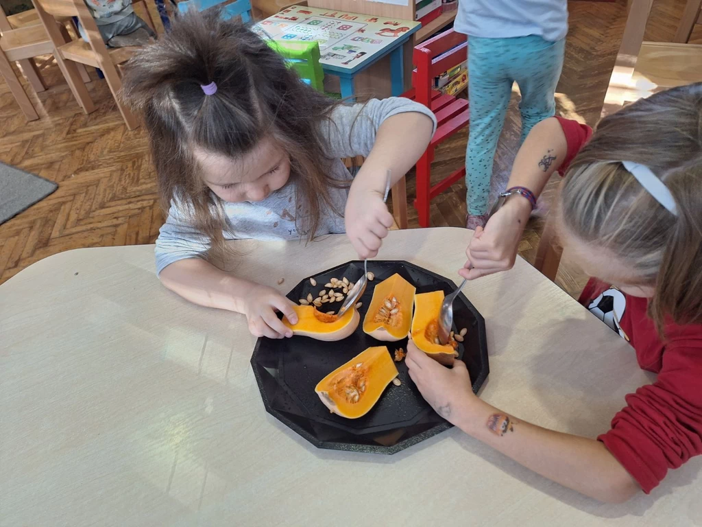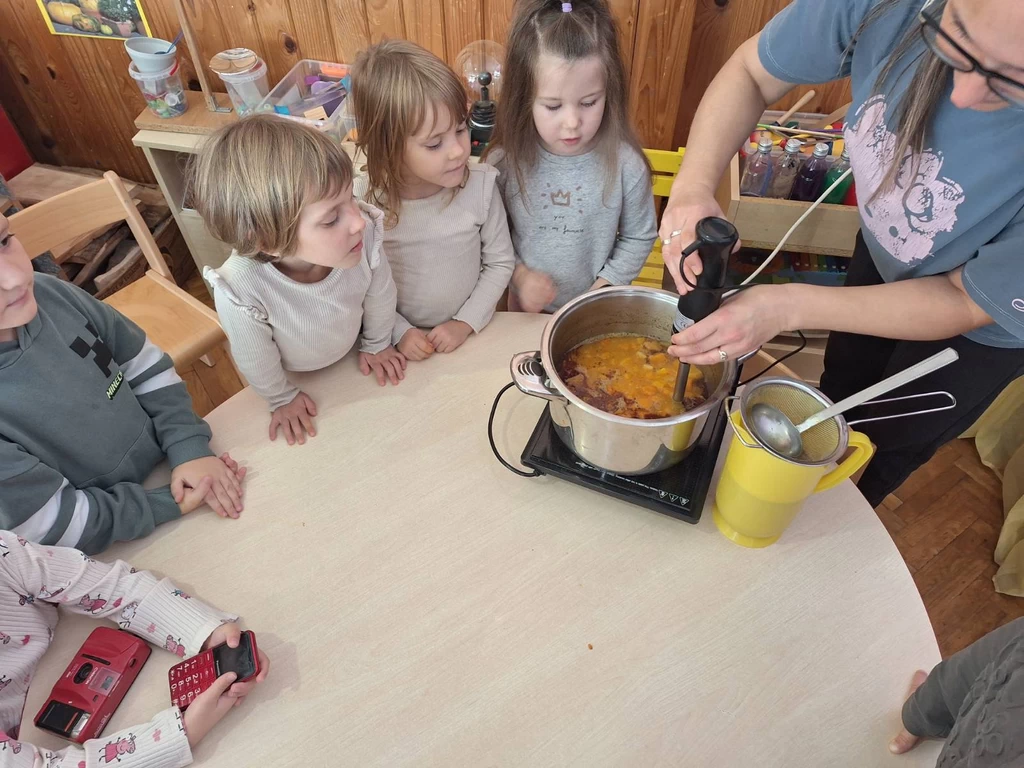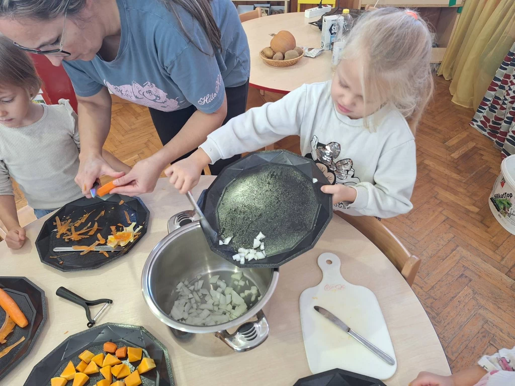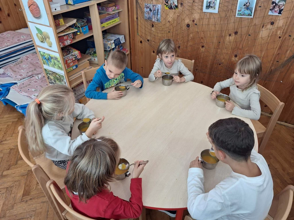 Posebno zanimljiva aktivnost bila je priprema juhe od bundeve. Djeca su aktivno sudjelovala u kuhanju – promatrala proces pripreme, gulili i rezali povrće, imenovala namirnice, mirisala i kušala sastojke. Nakon kuhanja su kušala juhu od bundeve, razgovarala o njezinu okusu, boji i mirisu te izražavala vlastite dojmove. Aktivnost je pridonijela razvoju svih osjetila, jezičnom izražavanju i pozitivnom odnosu prema zdravoj prehrani.