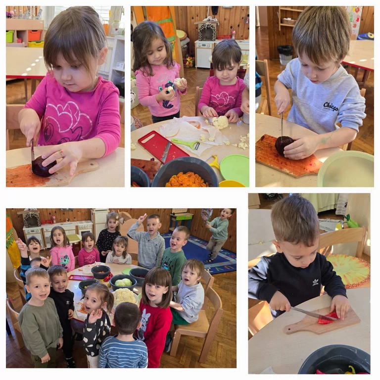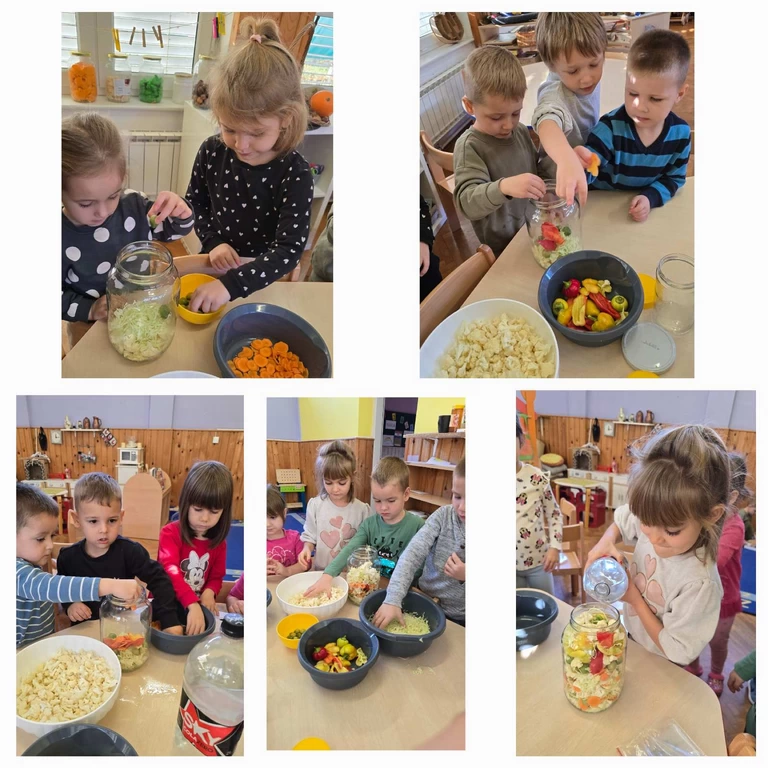 Djeca su sudjelovala u svim koracima – od pranja, guljenja i rezanja povrća, do slaganja u tegle. Usput su rado kušala povrće, razgovarala o njegovim bojama, mirisima i okusima, te pokazala puno znatiželje i veselja.
