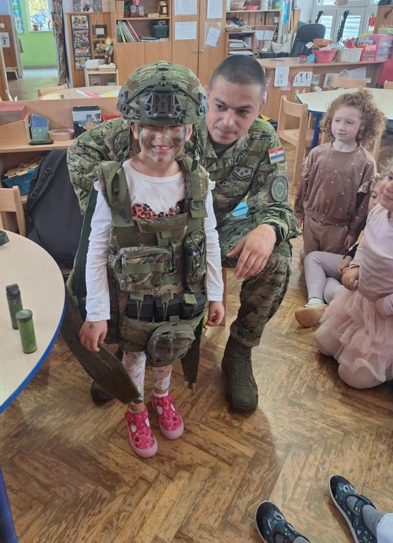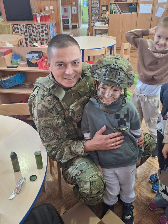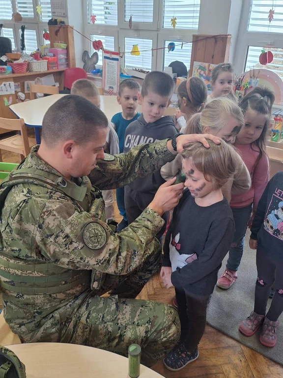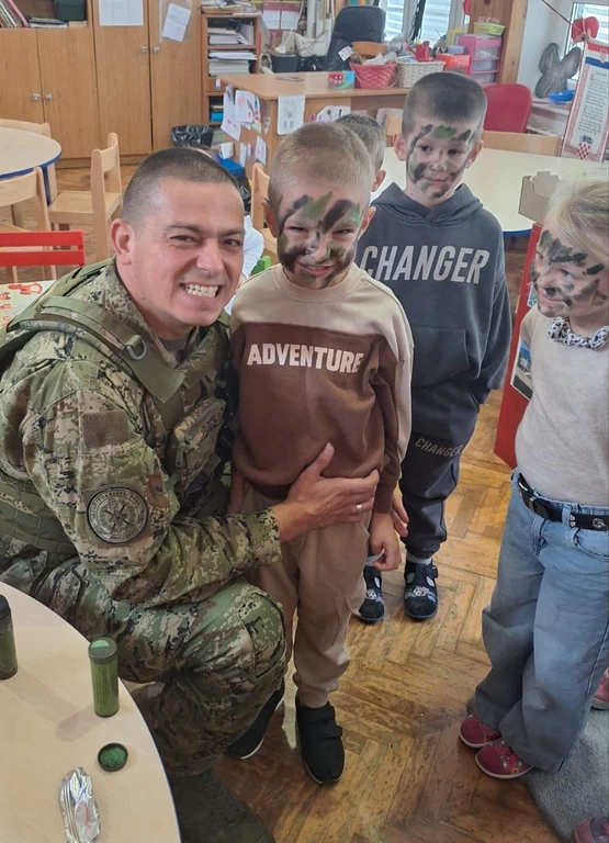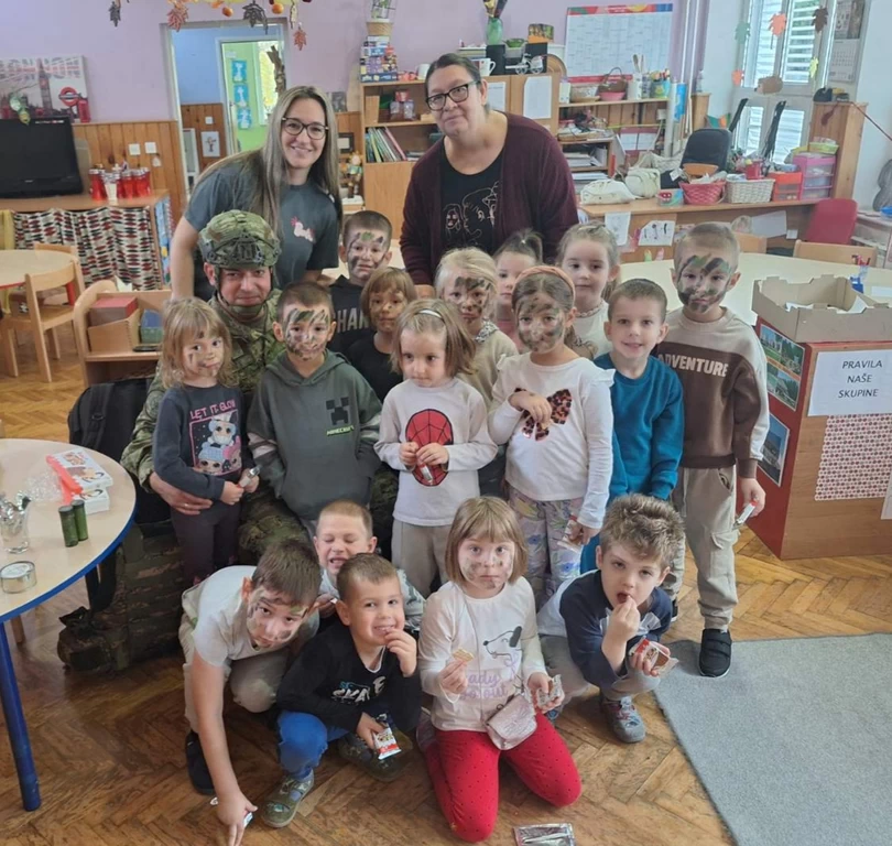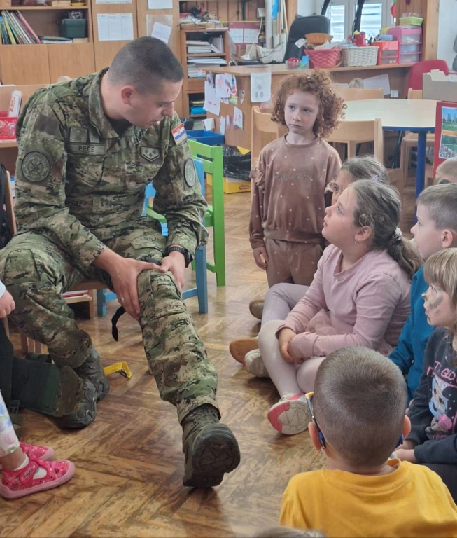 Dana 17. studenog 2025. skupinu Ljubičice (P.O. Leptirić) posjetio je vojnik iz Oružanih snaga Republike Hrvatske, gospodin Marko Prce, otac djevojčice iz naše skupine. Posjet smo organizirali s ciljem upoznavanja djece s ulogom vojske, osnovnim zadacima vojnika te važnosti sigurnosti i timskog rada.