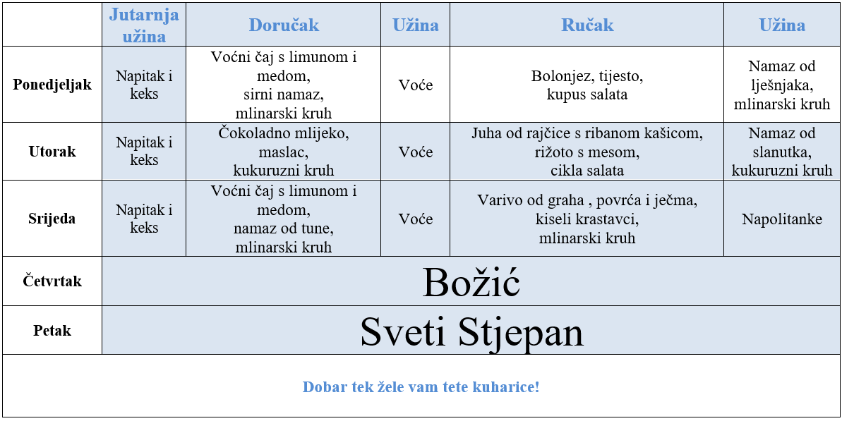 22.12.2025. – 26.12.2025. (jelovnik je podložan promjenama)